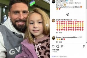 体育资讯11月19日讯 法国前锋吉鲁如今重返祖国效力里尔,作为一名父亲,他在社交媒体上晒出了自己和女儿的合照并祝其5岁生日快乐。